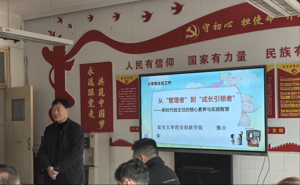 为积极践行高校社会服务职能,推动优质教育资源向基础教育一线延伸,2025年12月5日,教育学院熊小春教授受邀前往西安市长安区郭杜街道中心学校,为全体教师作题为《从“管理者”到“引领者”——新时代班主任核心素养与实践智慧》的专题讲座。讲座由郭杜街道中心学校校长雷朋主持。